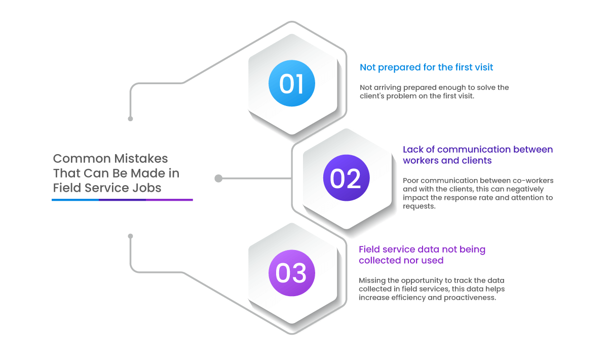 Some of the most common field services are: equipment installation work, maintenance, repairs, sales, courier, and general customer service. Behind every notification that a field service technician (called a mobile technician) receives on their mobile device, we can find a customer looking for quick solutions to their problems. If a mobile technician is capable of fixing the problem on their first visit, that is something the customer will sincerely appreciate.