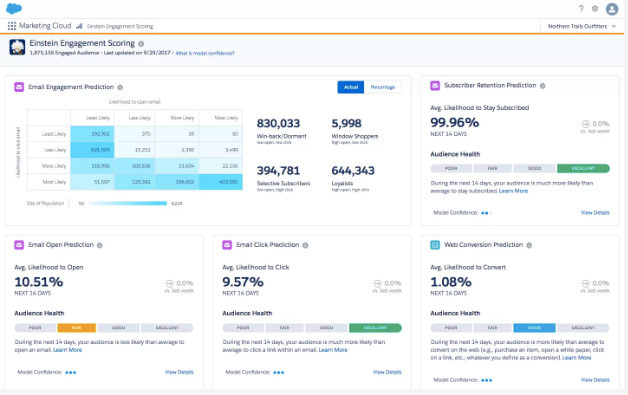 One of the benefits of Salesforce Einstein for Marketing Cloud is the ability to segment the audience into effective persona categories. Doing so is possible as Einstein sifts through billions of data points. This will allow the marketing team to have targeted messaging guiding them through their journey.