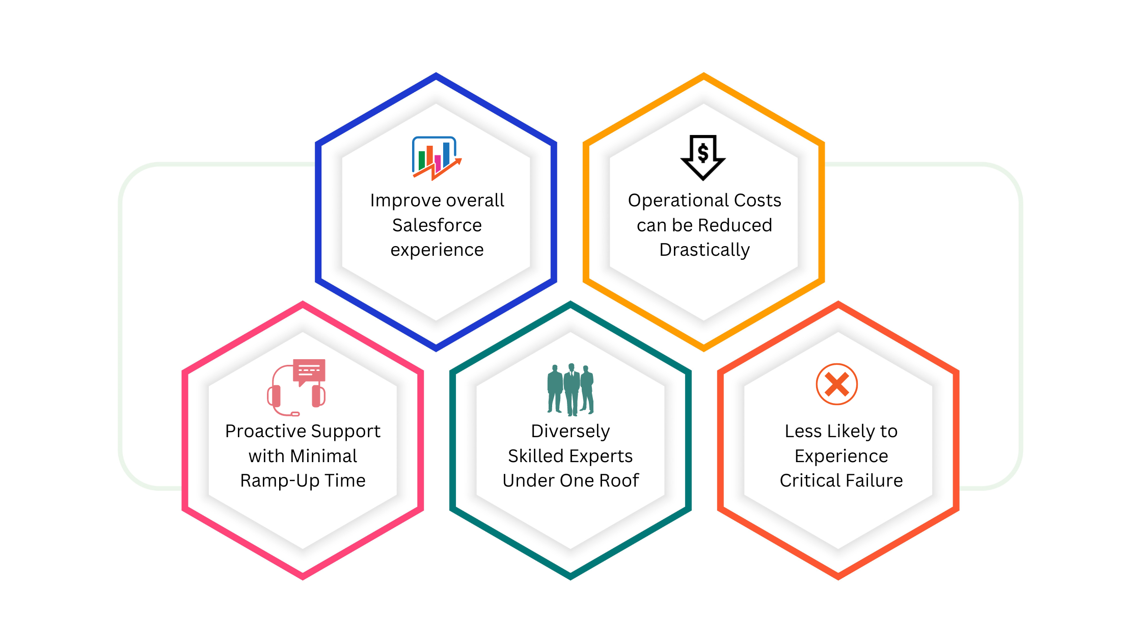 Salesforce users face a lot of hiring and retention hassles in their in-house setups. Managed Services Providers allow teams to overcome all such hassles with their comprehensive services under one roof. So instead of reaching out to hiring Salesforce developers, Salesforce administrators, or consultants for collaboration, you have access to diversely skilled experts that can be hired on an on-demand basis.