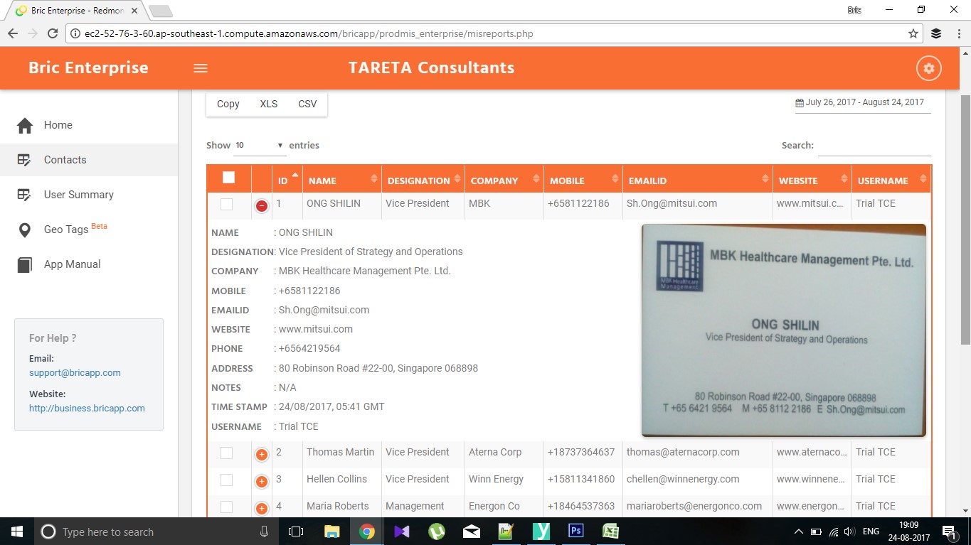 It's great to have business cards saved on mobile Apps like Bric App, accessed on the go etc but what if you need to access and engage with contacts from a larger screen real estate, have a team review or search, sort, type notes and quickly download CSV / Xls files on to desktop?