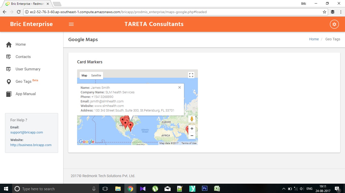Bric Enterprise App has an admin access to all the business cards scanned by all the users/sales teams in the company. It also populates data on date & time stamps of the scanned cards, user wise card scanning activity and so on which is used by a lot of existing companies for sales tracking.