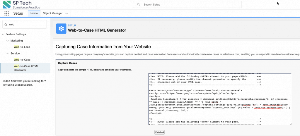 - Before creating a Web-to-Case form first enable Web-to-Case in org.