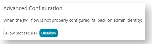 - In the panel that appears, under When the JWT flow is not properly configured, fallback on admin identity, select Disallow.