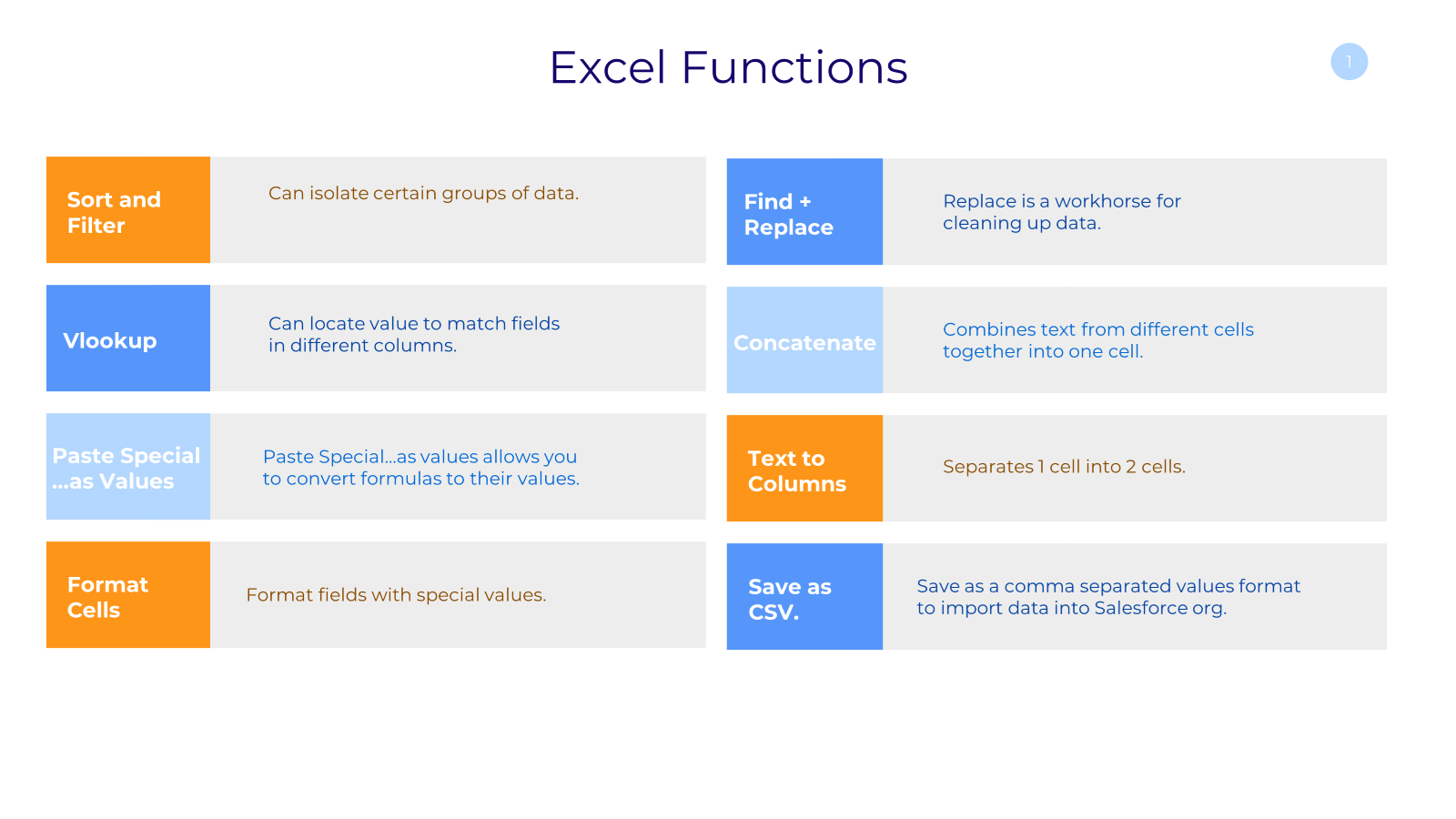 Excel functions can help clean up data and prepare import files to save time and prevent manual data edit errors.