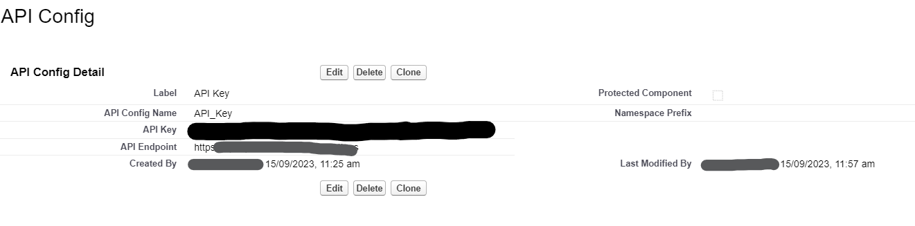 API_Config__mdt config = [SELECT API_Key__c, API_Endpoint__c FROM API_Config__mdt LIMIT 1]; String apiKey = config.API_Key__c; String endpoint = config.API_Endpoint__c;