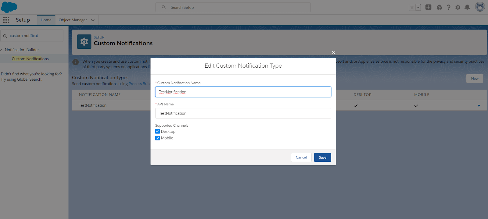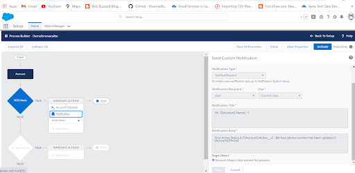 You'll make up to 500 custom notification types. Each notification can have up to 10,000 clients as beneficiaries. In any case, you'll include an activity to the same handle inside Process Builder or to the same stream in Stream Builder to have more recipients. Your org spares your most later 1 million custom notices for you to see in the notice plate. Your org can spare up to 1.2 million custom notices, but it trims the sum to the foremost later 1 million notices after you reach the 1.2 million limit.
