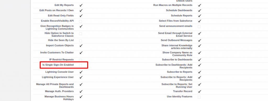 - This will open your profile detail page, go to Is Single Sign-On Enabled checkbox and enable it.