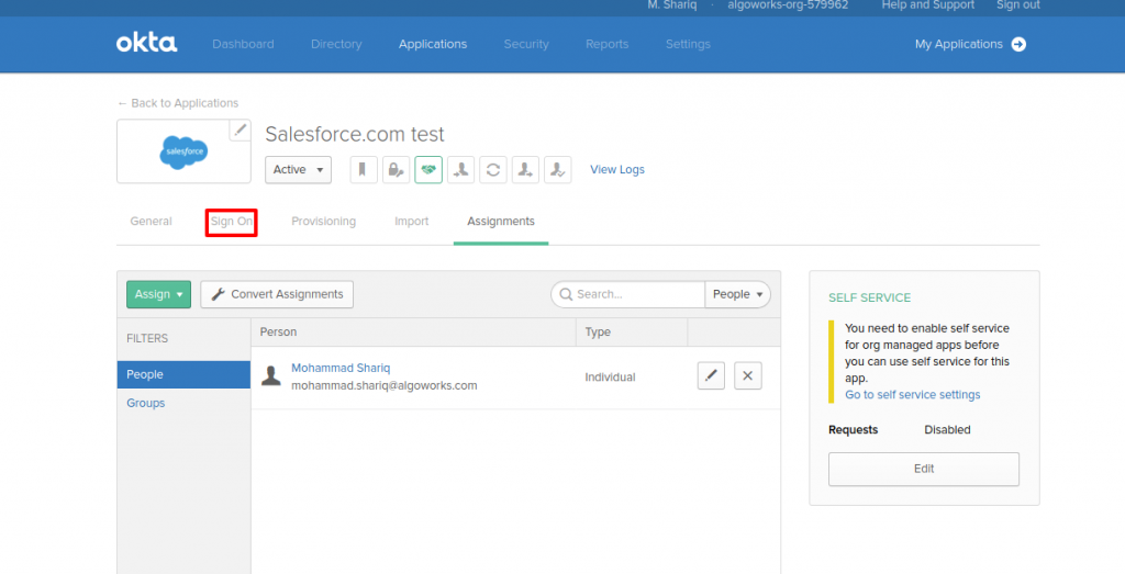 - Open your Okta's standard app detail page and click on Sign On tab.