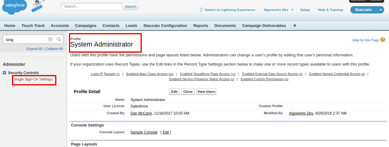 - Now go to your salesforce org's profile detail page and select the profile you want to use for delegate authentication, for now I am doing with my System Admin profile.