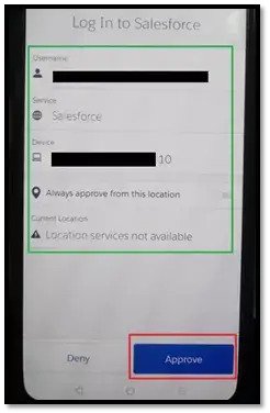 - Check your Salesforce Authenticator app; it will prompt you to approve this login or not. Click the “Approve” button to approve this login session.