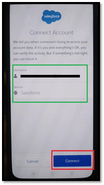 - Now, check your Salesforce Authenticator app; it will prompt you to connect with the authenticator. Click on the “Connect” button.