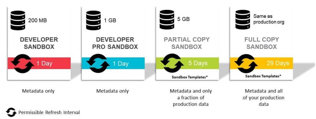 The developer sandbox is used for coding or testing in an isolated environment. The sandbox has the production organization’s metadata. You can refresh the data after every twenty-nine days. The limit of the sandbox depends on the productions.