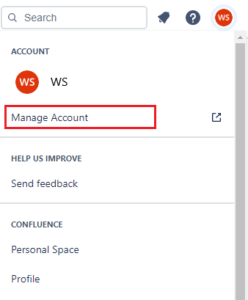 - Head to the "Manage account" section in Confluence.