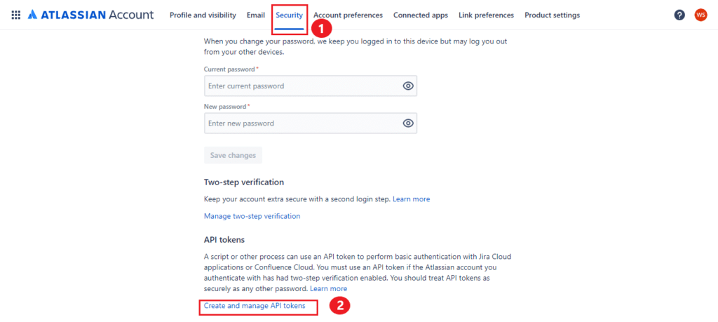 - Within the "Security" section, click on "Create and manage API tokens."