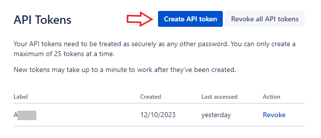 - Select "Create an API token" and assign a label to your new token.