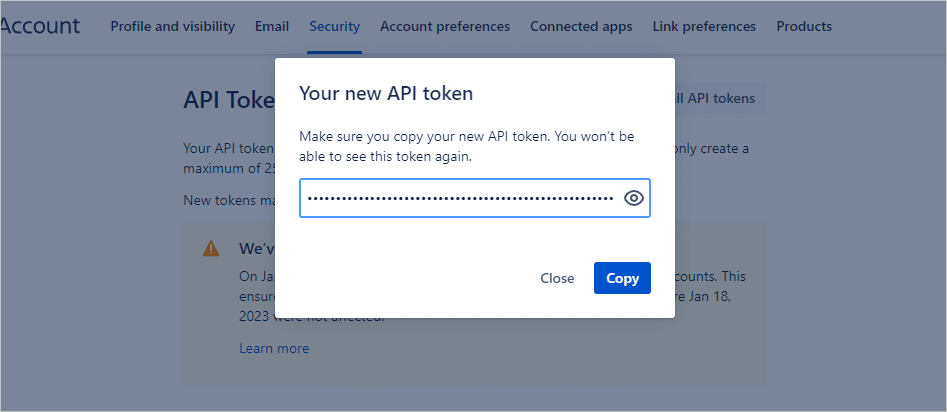 - Copy the generated token and enter it in the designated field in AbstraLinx. This token facilitates AbstraLinx's access to Confluence with user account authorizations.