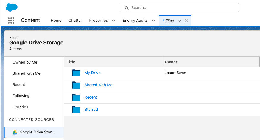 With all these steps done, you should be able to see the google drive in your Salesforce library. We’re not done yet though. Now that the connection has been established, we have to update some objects before we start transferring files.