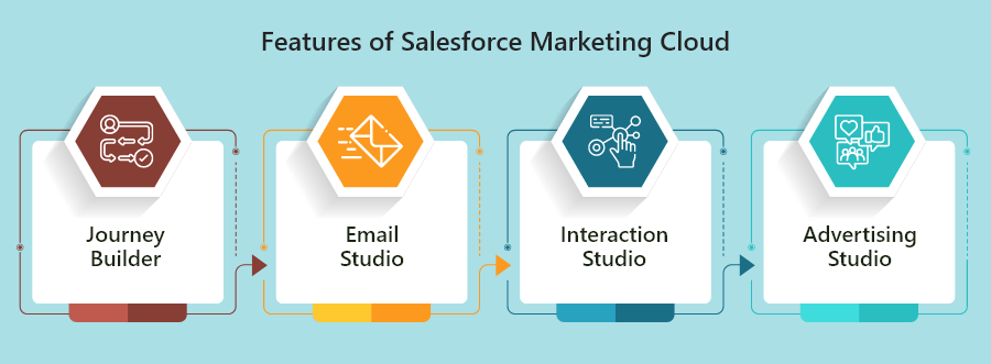 - Email Studio: It helps marketers create smarter email campaigns by using data from all departments and reaching out to customers on any device for personalized interactions. With Email Studio, you can send thousands of emails at a time, customize the messaging to suit the needs of the customer at every stage of their journey, and utilize Salesforce’s Einstein Engagement Scoring to predict the customer segments that are most likely to engage with your content.