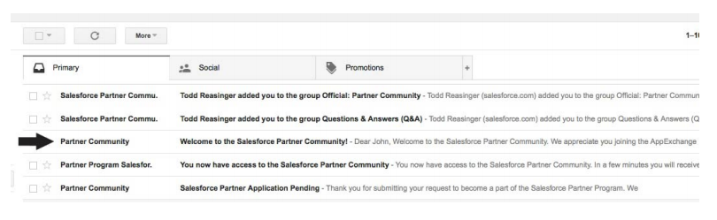 13. Check your inbox. Select the Partner Community email. Click the Partner Community link and login with your credentials.