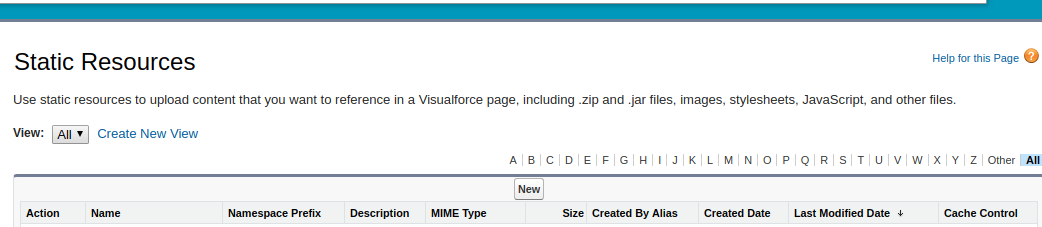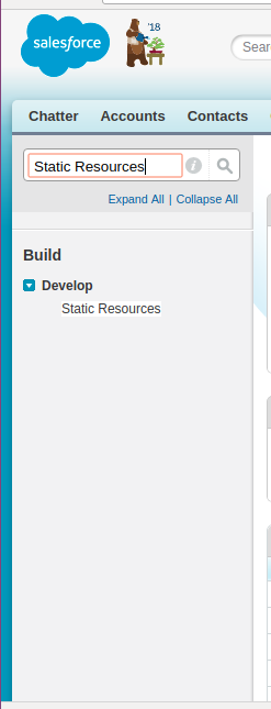 - Go to setup and enter static resources in the quick find box and select static resources.