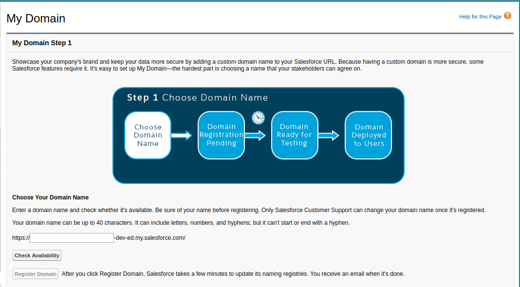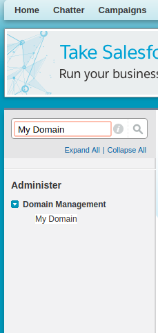 - Go to setup and enter ‘My domain’ in the quick find box and select my domain.
