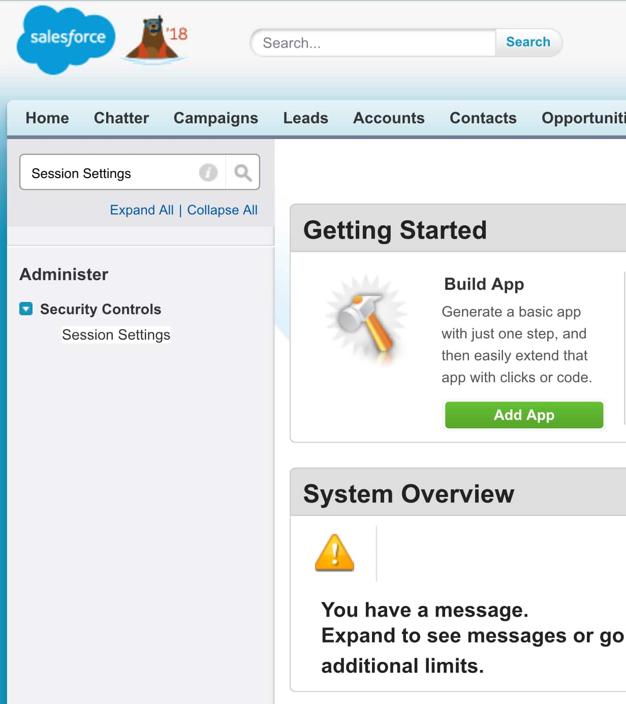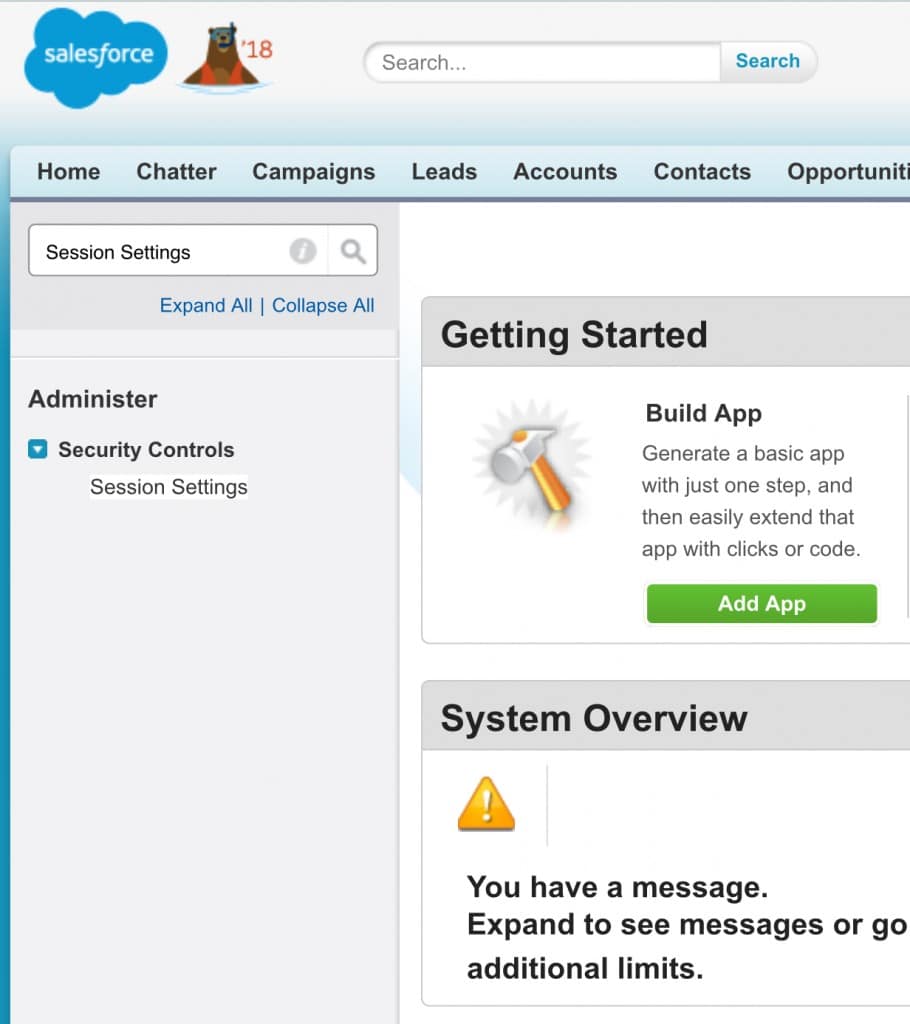1. Go to SETUP, and type ‘session settings’.