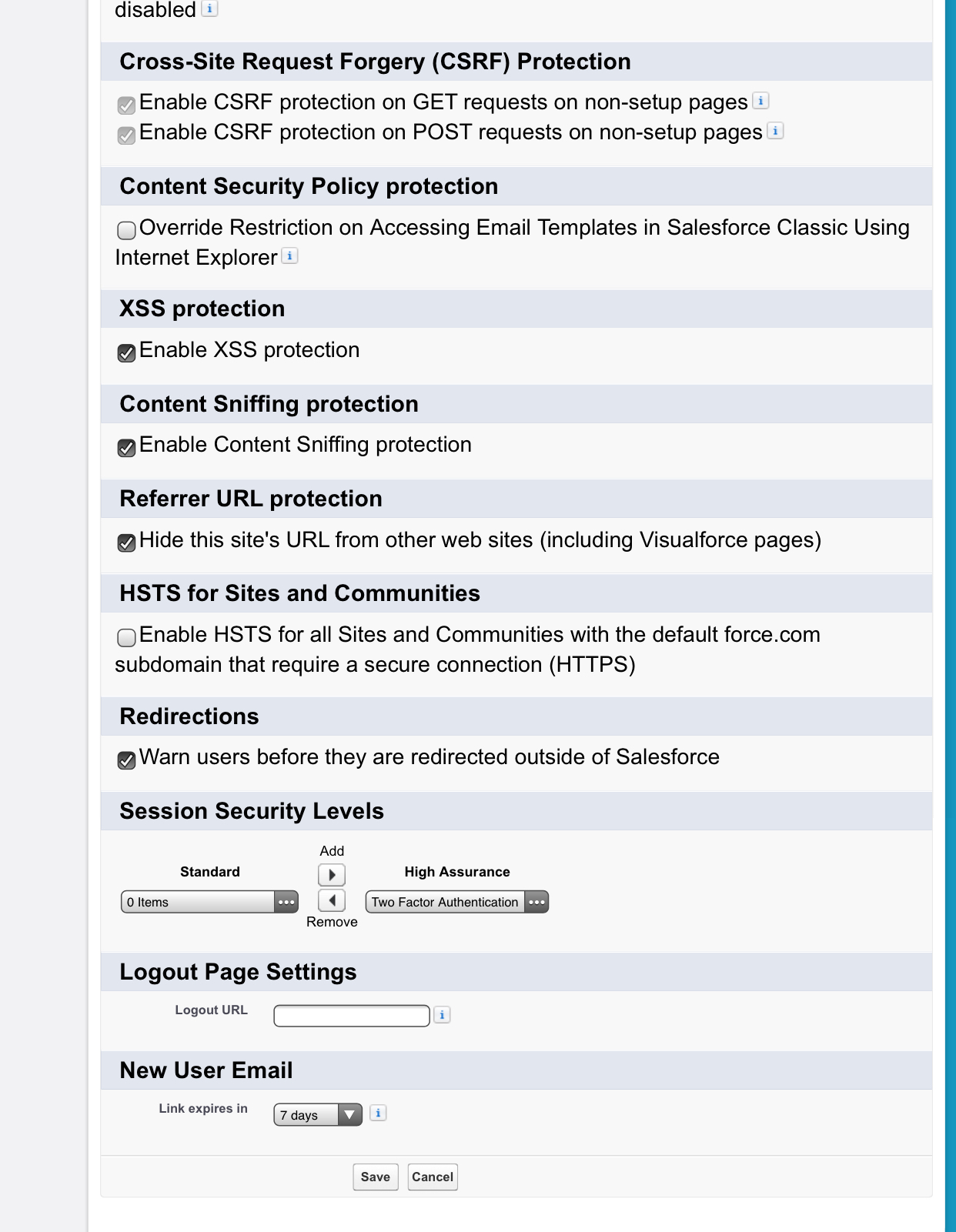 2. Scroll down to ‘Session Security Levels’