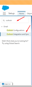 3. In the Quick Find Box, Search for Outlook Integration and Sync.