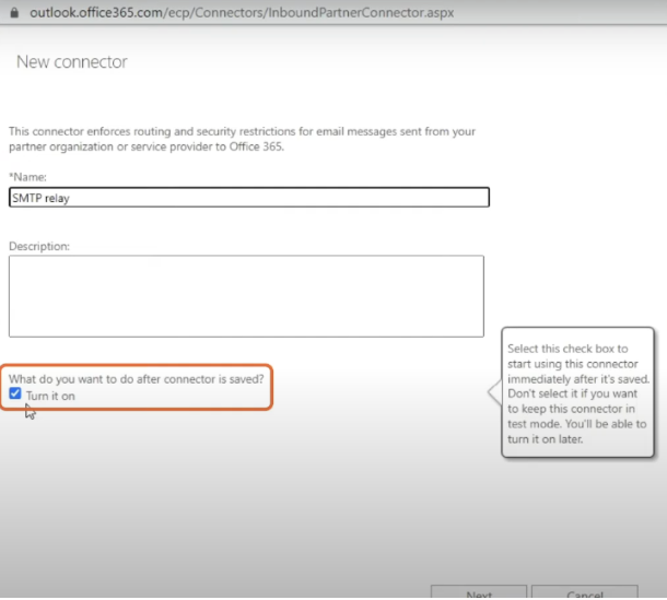 - Click Next Give connector name and check the checkbox