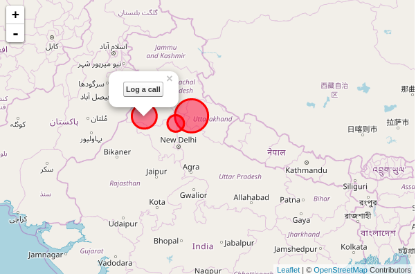 var map = L.map('map').setView([28.38, 77.12], 10);