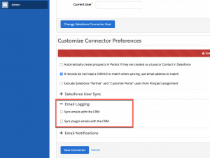 - There is a collapsible menu called ‘Email Logging’ on the Connector Preferences page.