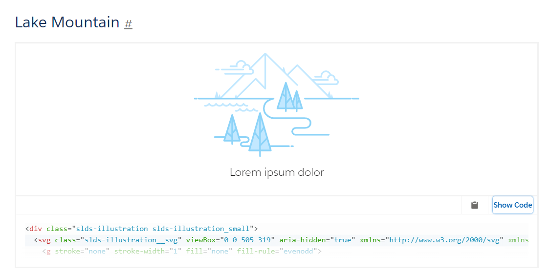 - Navigate to LakeMountain Illustration SVG and click on show code, then copy/paste LakeMountain SVG into your notepad.