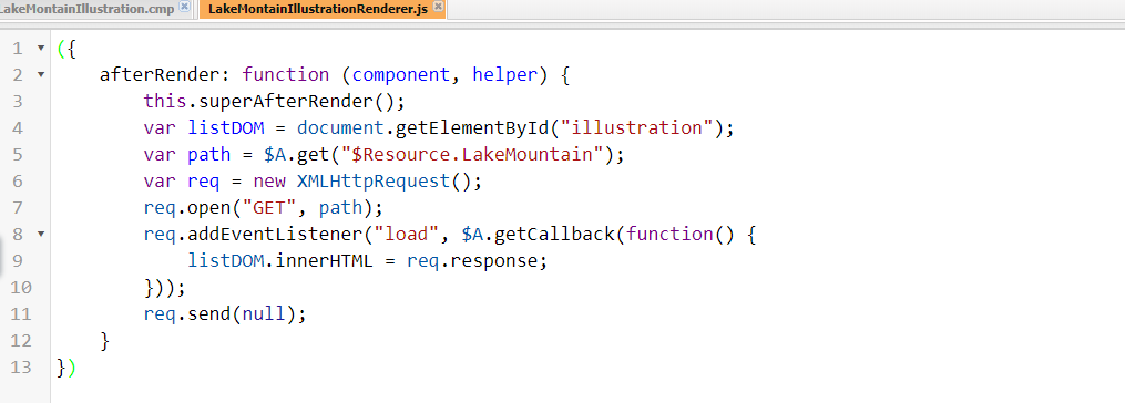 - We will use the afterRender method of renderer.js to get the SVG from the static resource and add it to the above div tag.