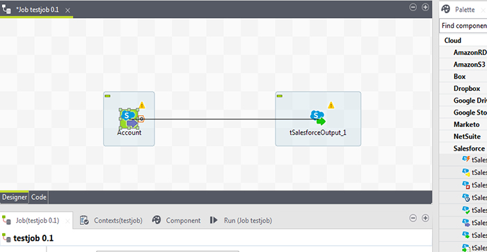 It also gives you the provision of creating a new connection by dragging the component from the right side Palette. Go to cloud then Salesforce and then Salesforce Output. After this has been established then click and edit the basic settings. After creating the input and output component click on the red arrow and drag and drop it into output component.