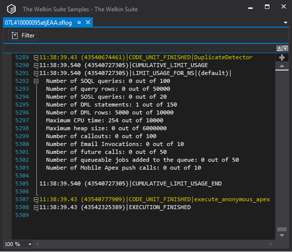 Thankfully, Salesforce's logs are showing us some bits of profiling information, so we can always pay attention to something, if we're doing bad performance wise: