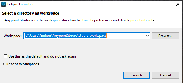 - Click on the launch button after selecting the directory of your workspace. It will then open the any point studio as shown in the figure below.