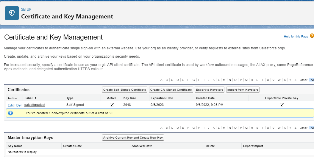 Import the JKS Format File In the Certificate And KeyManagement where Connected App is not Present.
