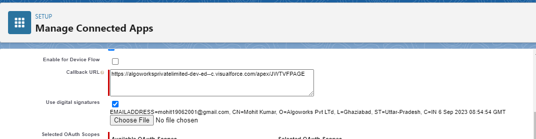 This Server.crt Certificate is used in the Signature field in The Connected App.