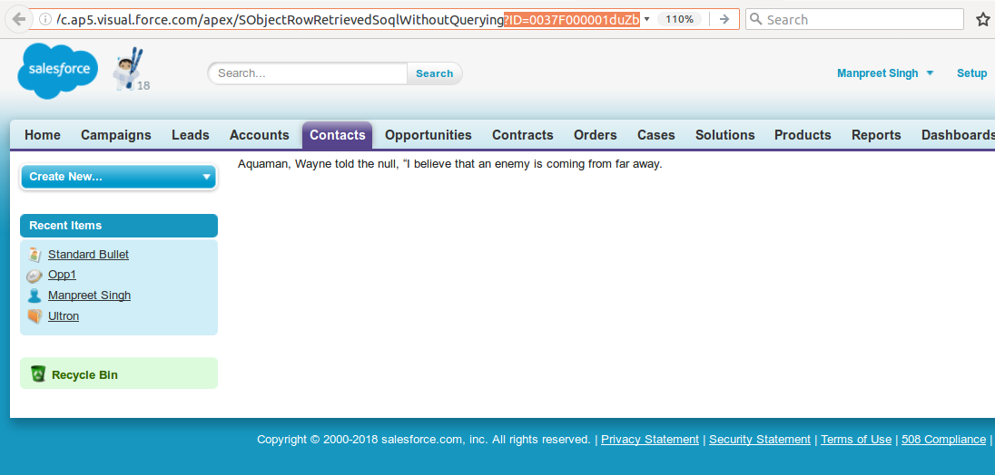 return 'Aquaman, Wayne told the ' + contact.FirstName + ', “I believe that an enemy is coming from far away. ';