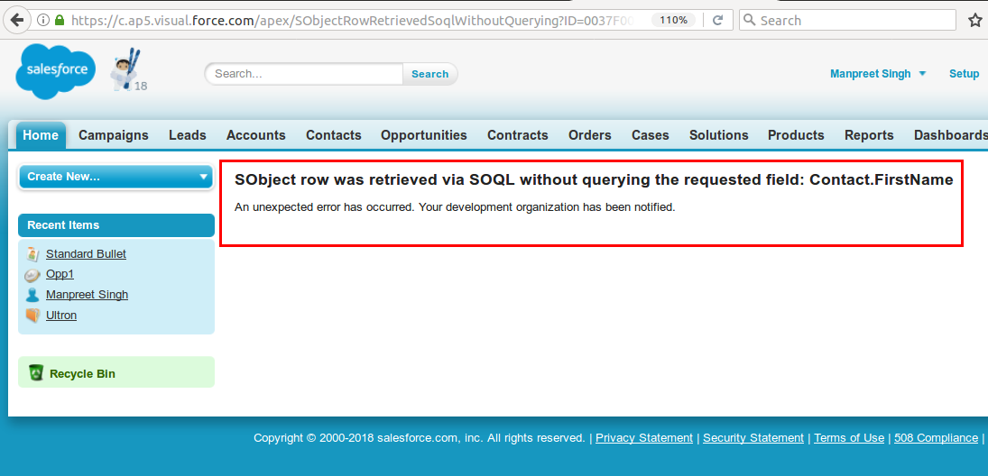 System.SObjectException: SObject row was retrieved via SOQL without querying the requested field: Contact.FirstName