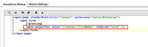 <apex:outputText value="{!contact.FirstName}" rendered="false" />