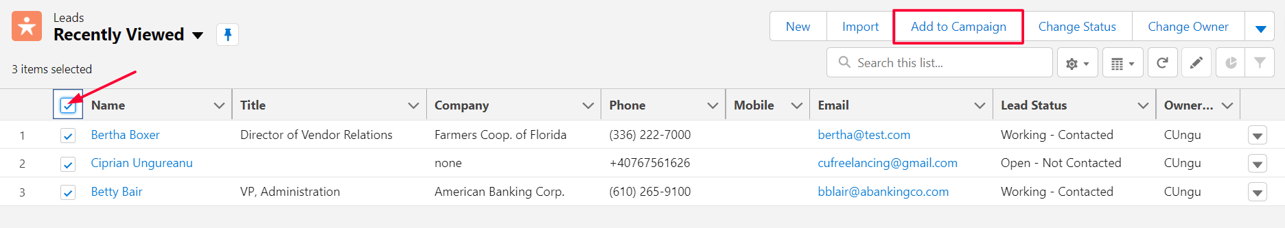 - Add up to 200 contacts or leads from a list view. This is helpful if you want to add dozens of contacts or leads with some simple segmentation.