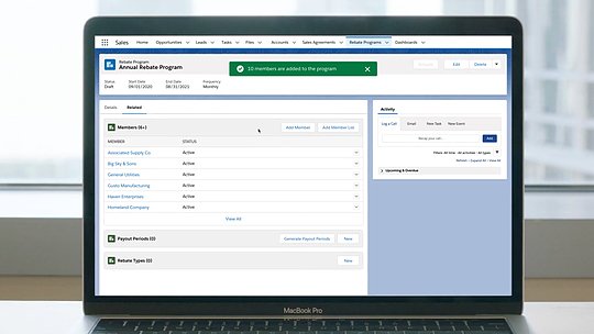 A company using Salesforce cloud products can integrate Rebate Management software in their processes. These integrated applications can support companies that belong to network-reliant industries like consumer goods providers and manufacturing. With integrations, various departments can track channel partner sales using the same CRM system that account managers use to track other activities. Insights from these places can transform how a company handles rebate programs, making it more transparent.