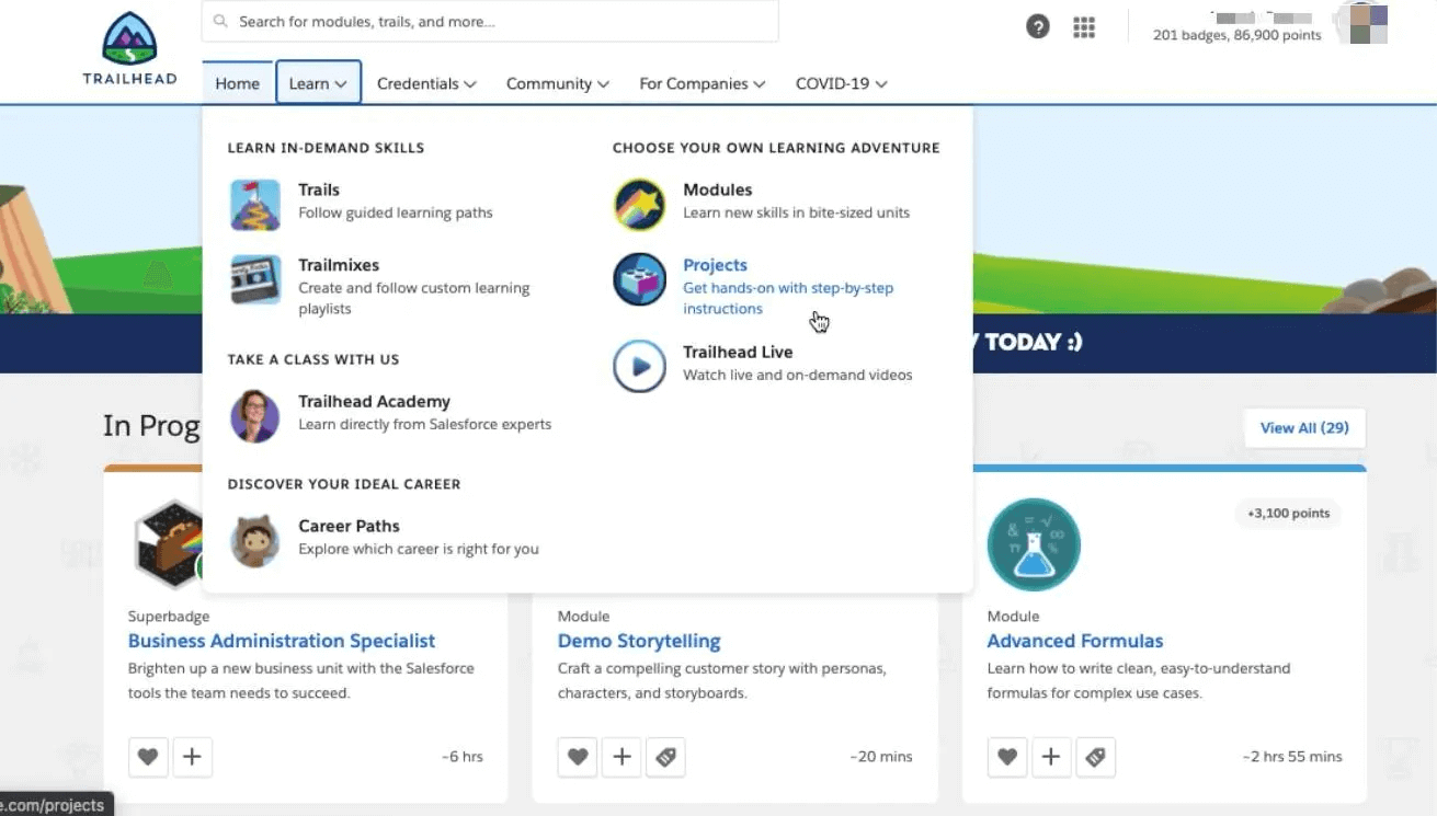 • Trailhead is the best way to learn Salesforce where you can learn and understand the Salesforce. It’s fun, interactive, and is pretty much your one-stop shop for learning about the platform.