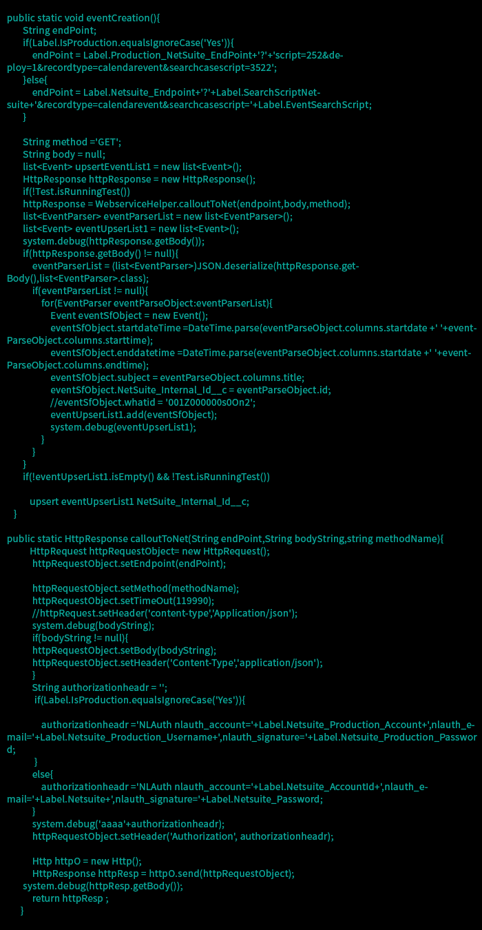 Similarly for fetching data from NetSuite, you need to create data fetching Batch helper in Salesforce and create callouts for fetching JSON data from the NetSuite database. In this example, we are fetching event data from NetSuite and storing it in Salesforce Object.