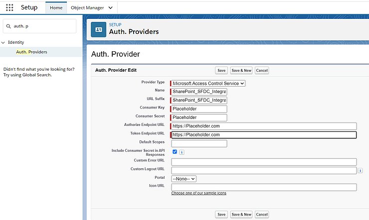 Create an Authentication Provider Using Placeholder Values