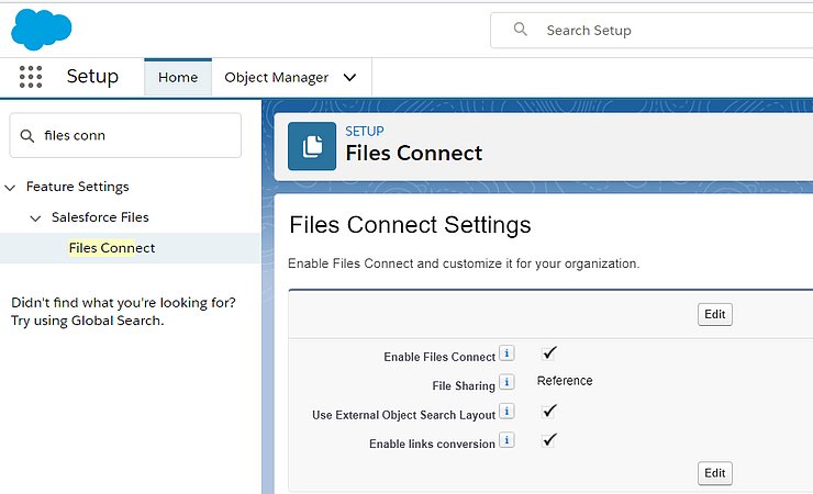 Navigate to Setup | Files connect |