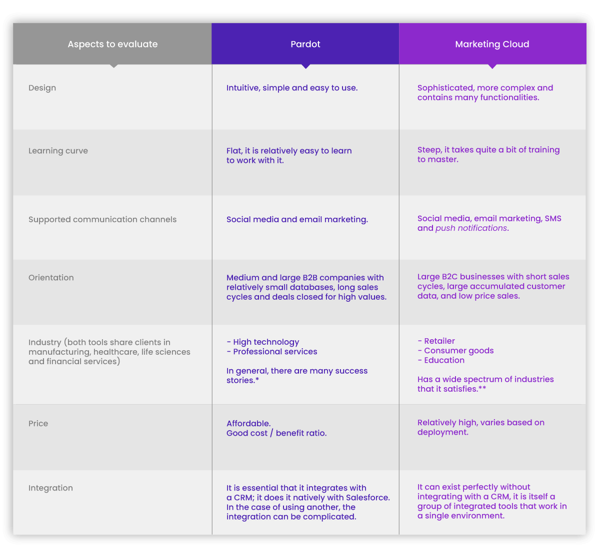 Now, with these questions in mind, everything will be easier. Even with the versatility and customization capacity of Pardot and Marketing Cloud, let us not forget that each one has been designed for a particular purpose.