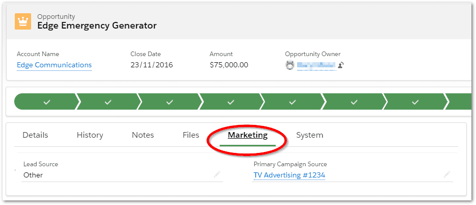 Marketing campaigns will show you the lead source and primary campaign source field whereas; system information will be available under the system tab.