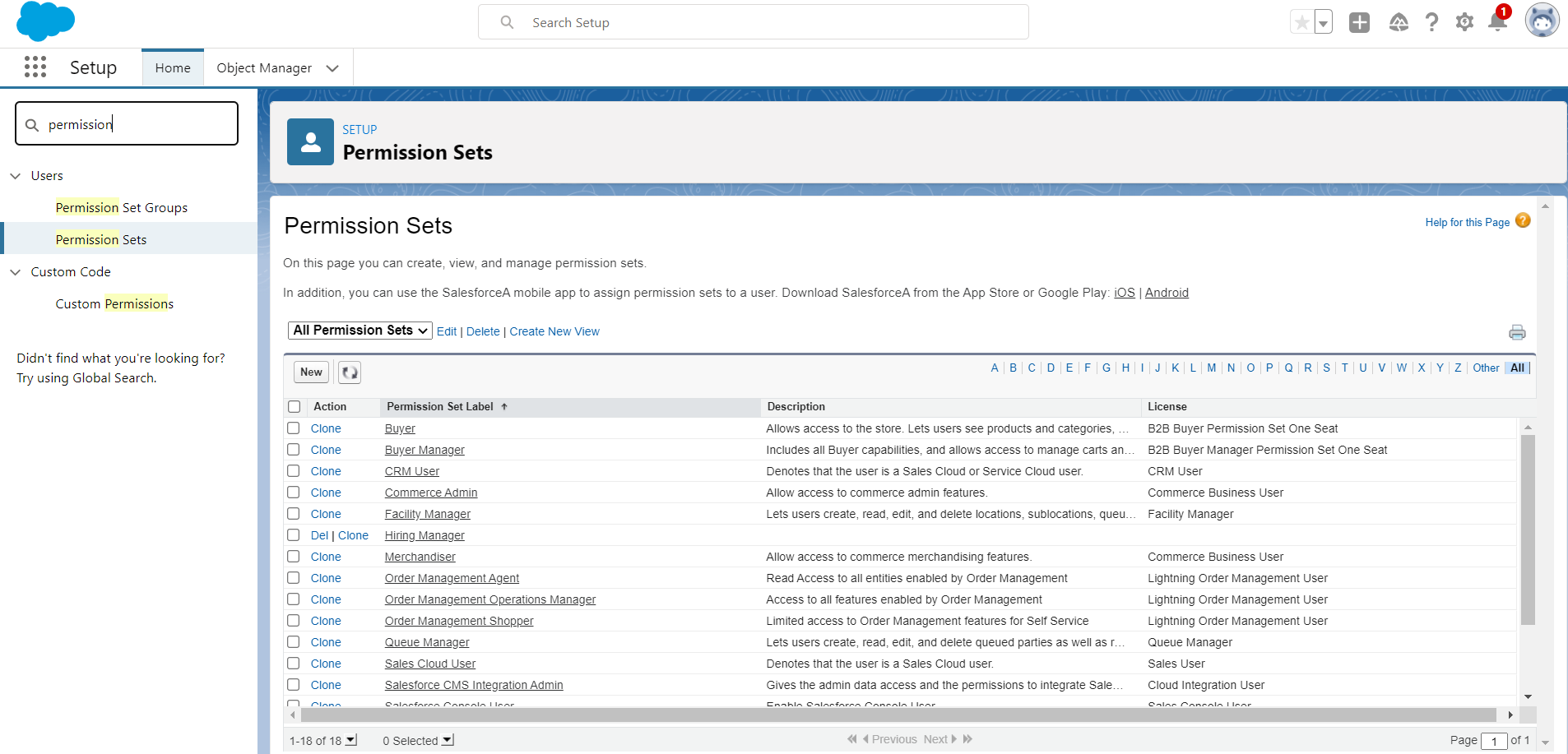 Step 1: Go to the setup and search permission sets in the quick find box. Here you can see some standard permission sets present in your org.